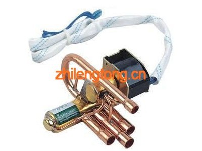 四通閥是具有四個油口的控制閥。四通閥是制冷設(shè)備中不可缺少的部件,其工作原理是,當(dāng)電磁閥線圈處于斷電狀態(tài),,先導(dǎo)滑閥在右側(cè)壓縮彈簧驅(qū)動下左移,高壓氣體進入毛細管①后進入右端活塞腔,另一方面,左端活塞腔的氣體排出,由于活塞兩端存在壓差,活塞及主滑閥左移,使排氣管與室外機接管相通,另兩根接管相通,形成制冷循環(huán)。